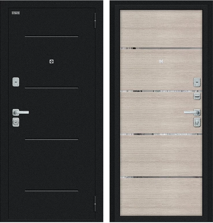 Надежная входная Дверь Браво Лайн/BChrome Букле черное/Cappuccino Melinga премиум класса по цене 32 251 руб. Большая толщина стали защитит от проникновения в ваш дом, квартиру или коттедж. Используется очень качественная фурнитура: замки, цилиндры, ручки, защелки. Покрытие и отделка двери изготовлено под внимательным контролем производителя. Дверь имеет долгий срок службы и гарантию.