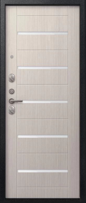 Надежная входная Дверь V-05 Черный муар - Лиственница светлая премиум класса по цене 42 551 руб. Большая толщина стали защитит от проникновения в ваш дом, квартиру или коттедж. Используется очень качественная фурнитура: замки, цилиндры, ручки, защелки. Покрытие и отделка двери изготовлено под внимательным контролем производителя. Дверь имеет долгий срок службы и гарантию.